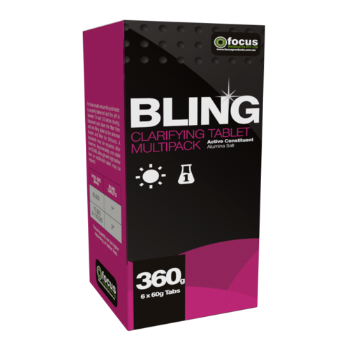 Bling clarifying tablets assist in the clarification of pool water through binding organic and inorganic wastes together. Bling clarifying tablets are a rapidly dissolving, single dose polymetric clarifier that can be placed directly into the skimmer basket.